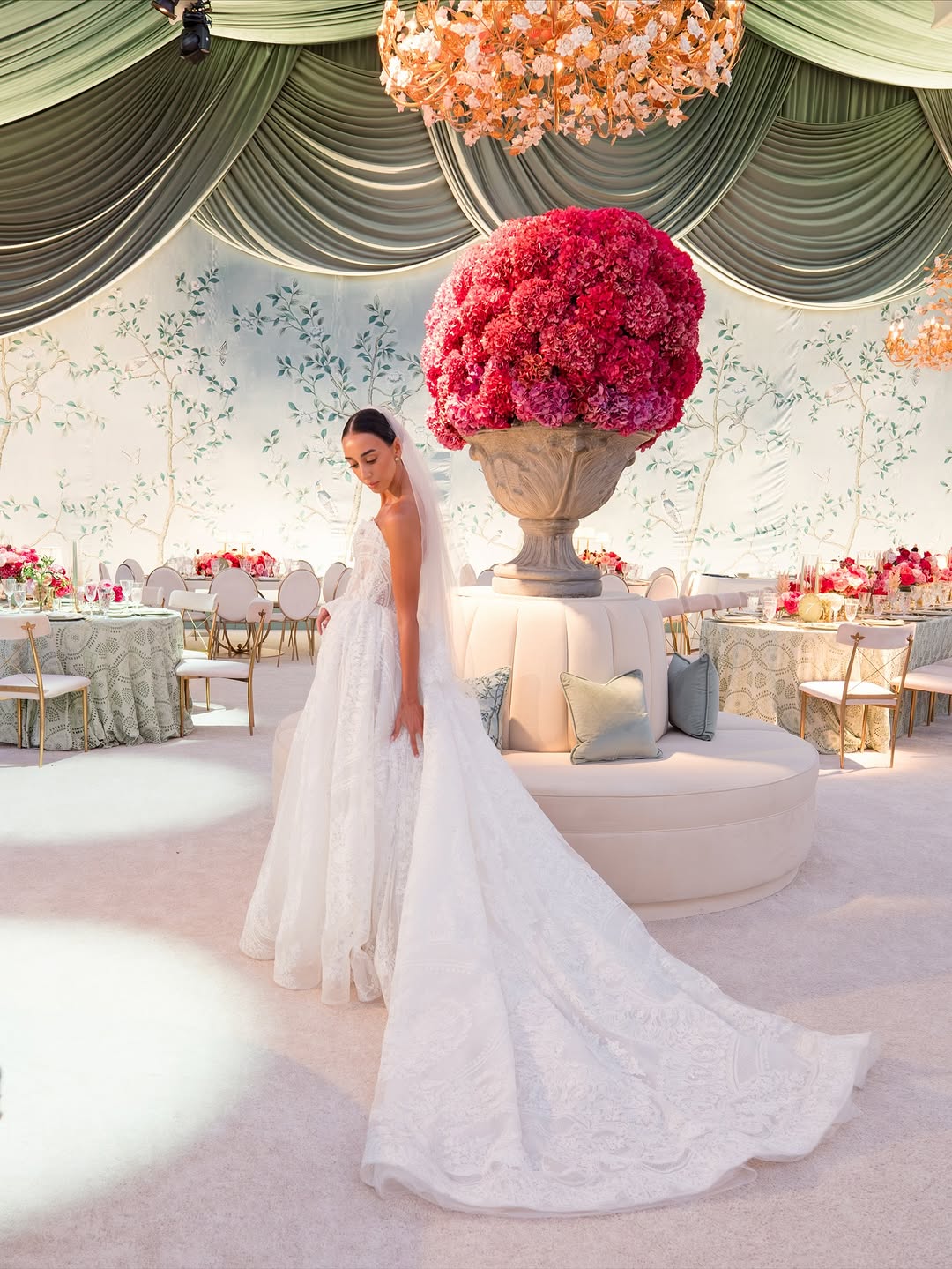 Whether it’s a ballroom, garden, or mountain setting, the goal is always the same — to transform the entire space into a work of art around the couple.